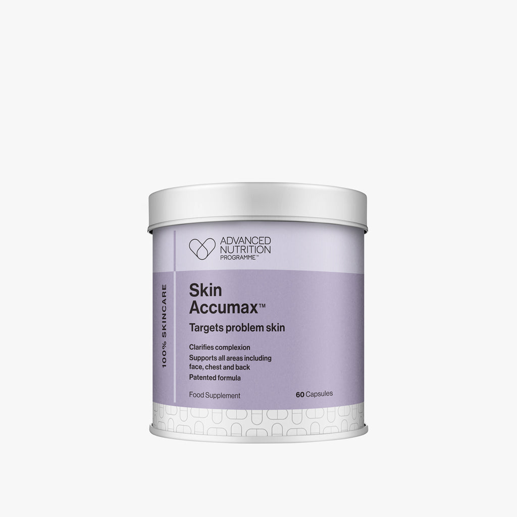 Skin Accumax™ is a patented skincare supplement for those who suffer from problem skin. It works from the inside out to clarify and clear the complexion on your face and body.